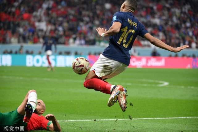 比赛中,作为法国队进攻核心的姆巴佩,还遭遇对手重点照顾,屡次被铲翻。尤其是下半场,第51分钟姆巴佩拿球后沿着左路奔袭到底线附近。摩洛哥中场阿姆拉巴特瞅准时机一个倒地铲球,连人带球一块铲,姆巴佩应声倒地,主裁示意比赛继续。法国队主帅德尚对主裁的判罚相当不满,而姆巴佩也是一手捂脸一手捂着左侧脚踝倒地不起。