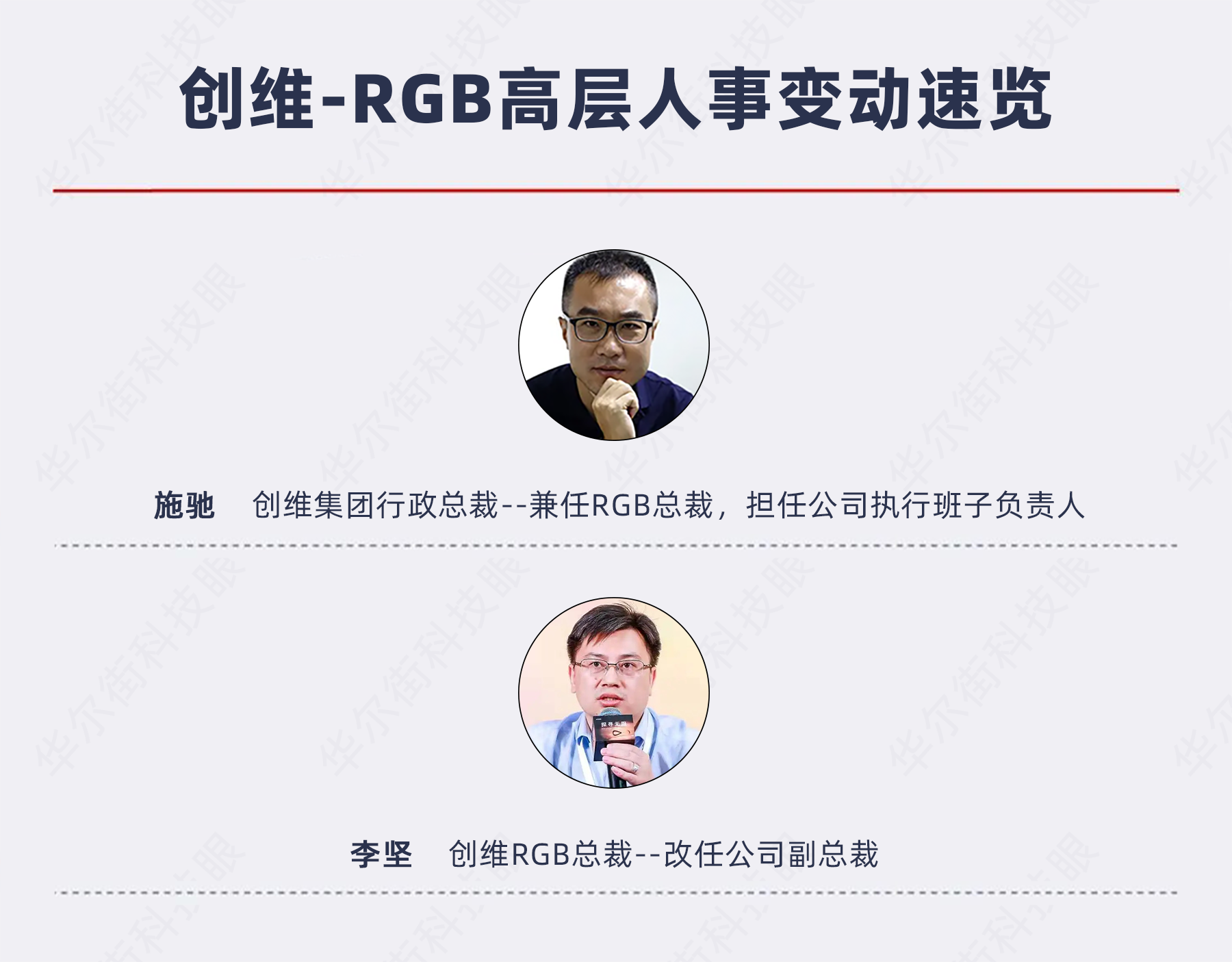 创维—RGB是创维集团(00751.HK)子公司,主营彩电等多媒体业务,近日,创维集团内部发布红头文件称,旗下深圳创维RGB-电子有限公司执行班子调整。