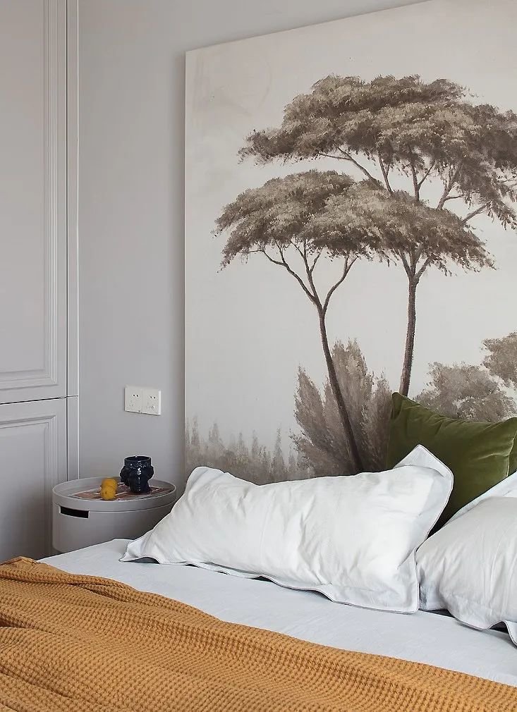 暖橘则作为一抹跳色,瞬间点亮整个卧室空间,营造明亮温暖的氛围。