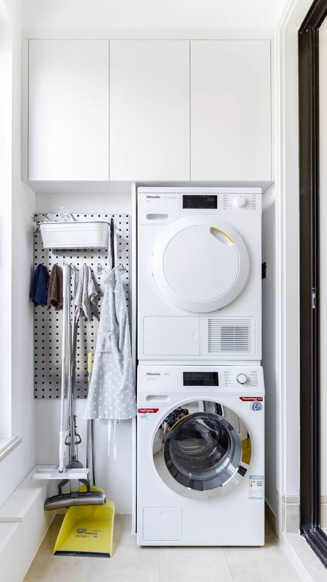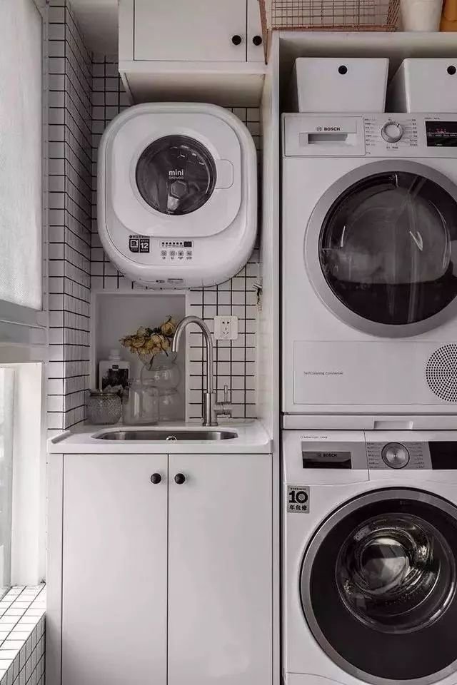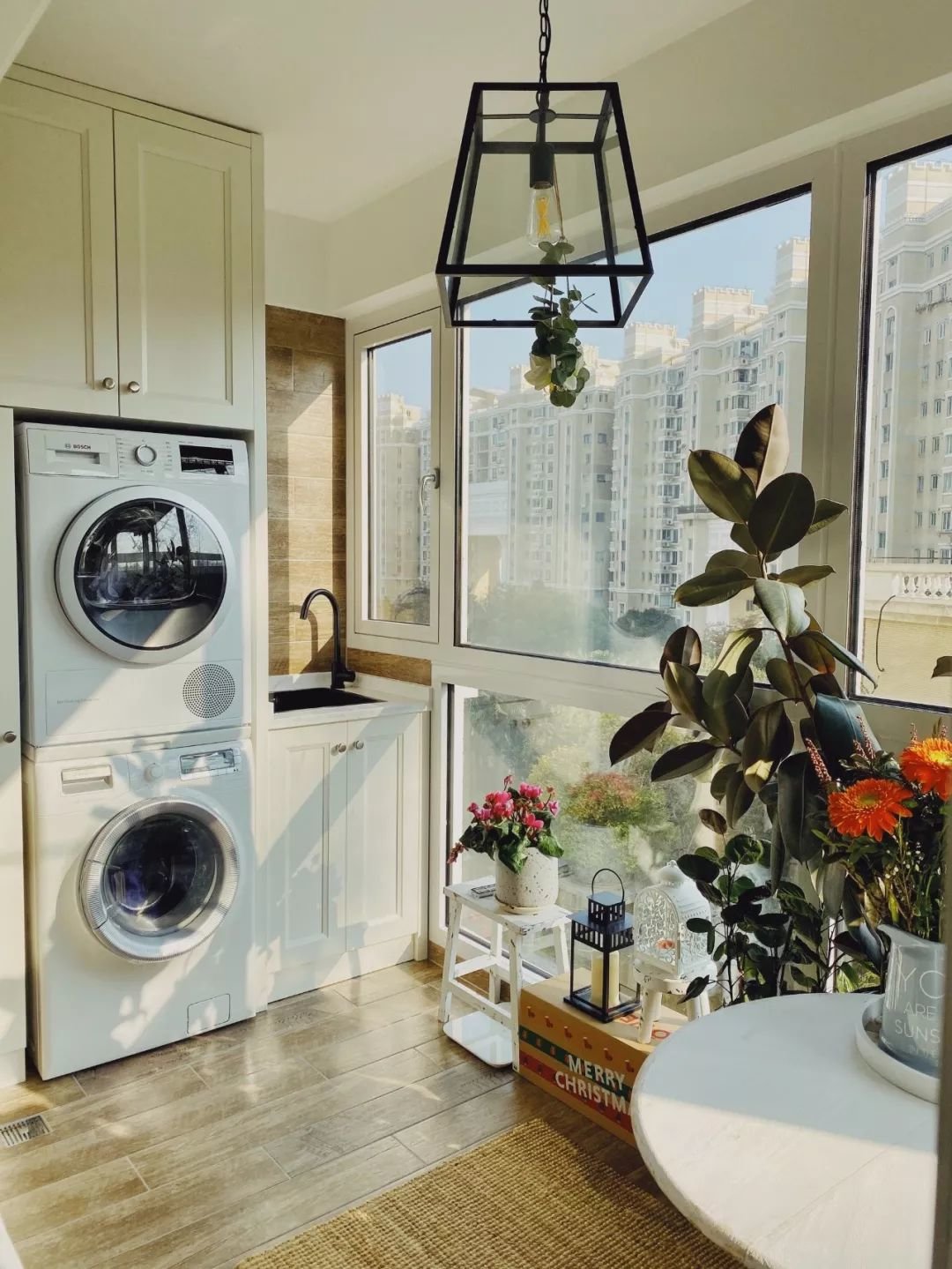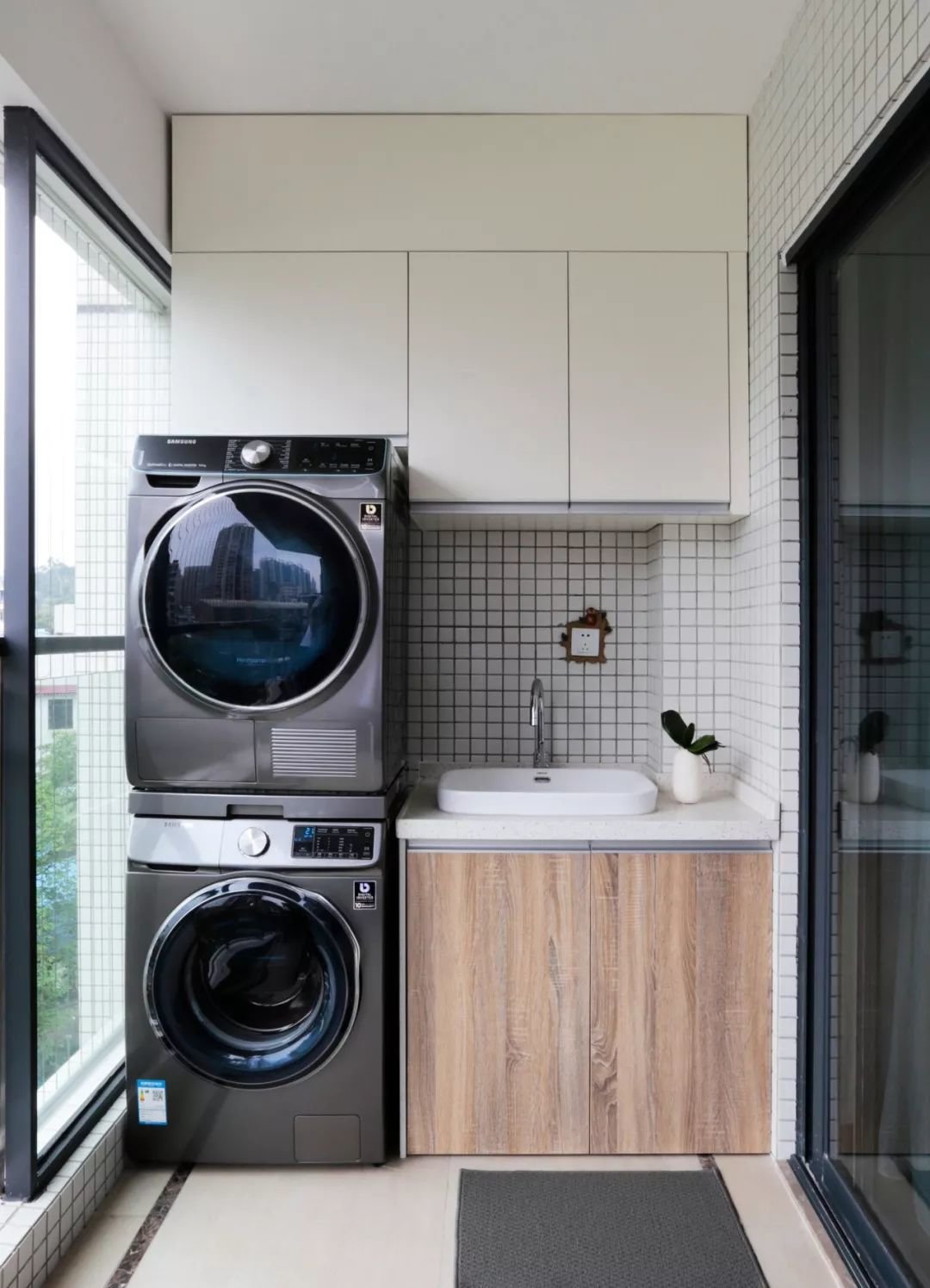 拥有这样一个极致的洗衣区,即使每天的洗衣家务也变得快乐起来,让小小的阳台,变身洗衣、烘衣、晾衣三不误的区域。