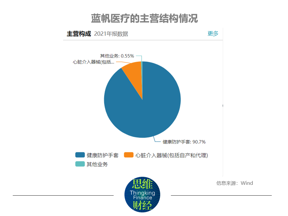 再看当前蓝帆医疗的主营结构,其中健康防护手套业务占比90.7%,而心脏介入器械业务(包括资产和代理)占比仅8.75%,其他业务占比0.55%。由此可见,公司当前的营收主要还是靠健康防护类产品。