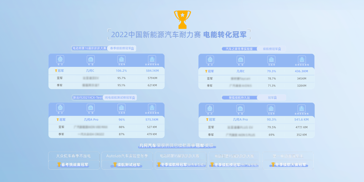 其实这不是几何汽车第一次在续航挑战赛中获得第一名,过去几年里,几何汽车在专业媒体举办的续航测试中已经获得了十次冠军。而本次汽车之家2022冬季实验室中的参赛车型几何G6/M6,则是传承了几何汽车真续航的优质基因,并搭载了SEM2.0超级能量管理大师,将真续航实力更进一步,表现出了几何汽车对续航的极限追求。