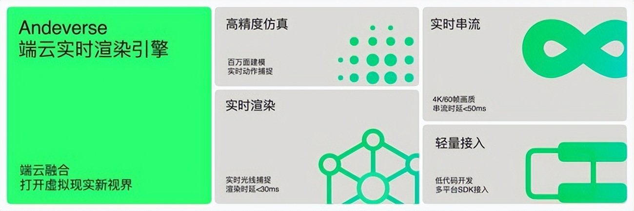 在应用场景方面,其主要用于探索虚实融合场景。不难看出,虚实融合技术将会成为移动互联的下一个形态,具备AR、XR主导的扩展现实技术提供了更沉浸式的体验,而VR、“元宇宙”主导的由数字孪生技术生成的现实世界的镜像亦允许每个用户进行生产和编辑的内容,这些技术都需要大量数据的运算,需要支持PB级场景数据存储与海量算力引擎。对于终端来说,这样的数据量显然过于庞大。而OPPO安第斯智能云的端云实时渲染引擎,能够将那些对存储、算力要求极高的全真技术放在云端进行,通过实时渲染与串流技术,让端侧无需受到终端性能与成本所约束,实现轻量化接入,轻松获得沉浸式体验。