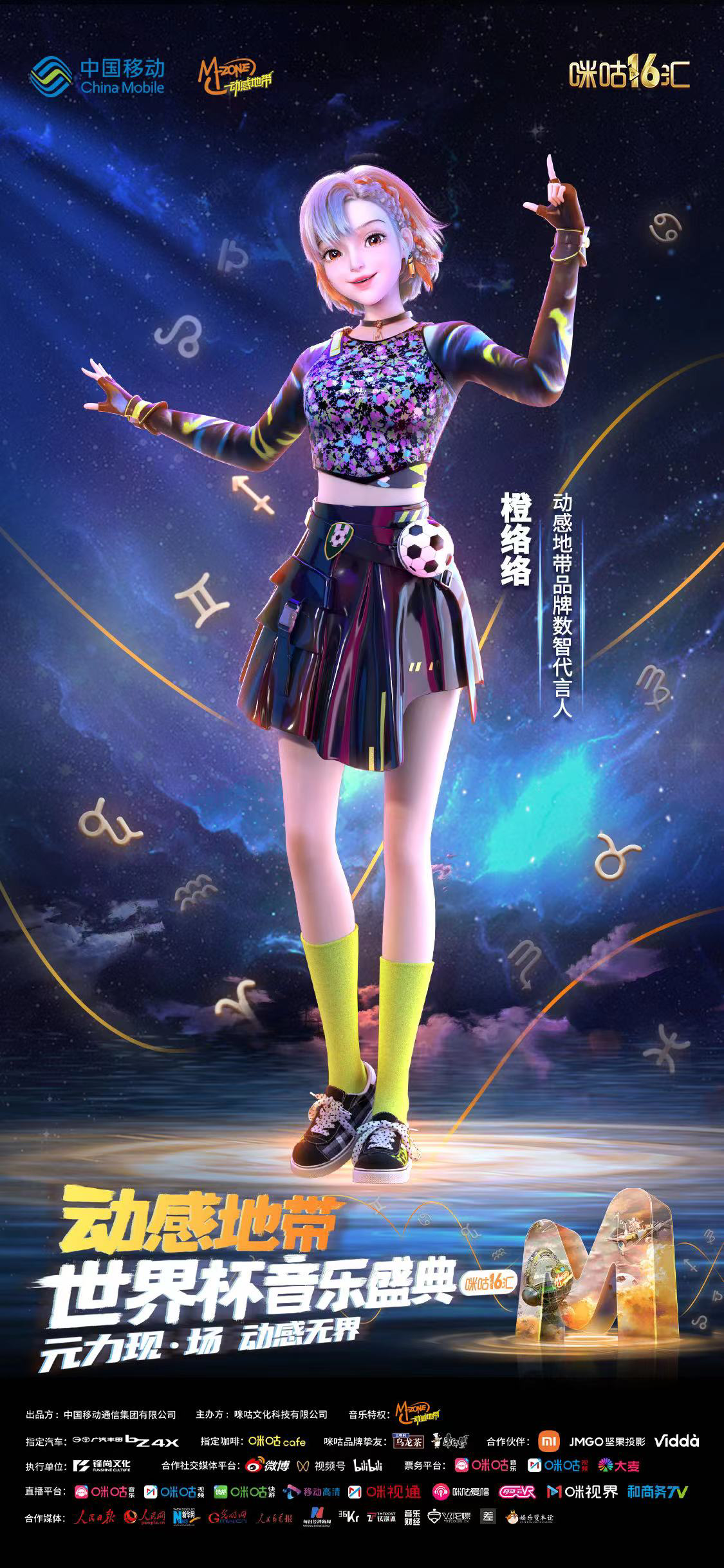 12月16日晚7点半,锁定咪咕音乐、咪咕视频、咪咕快游、移动高清、咪视通、咪咕爱唱、移动云VR等平台直播,即可步入「动感地带星座·M」,开启新一轮的元宇宙畅游旅程。