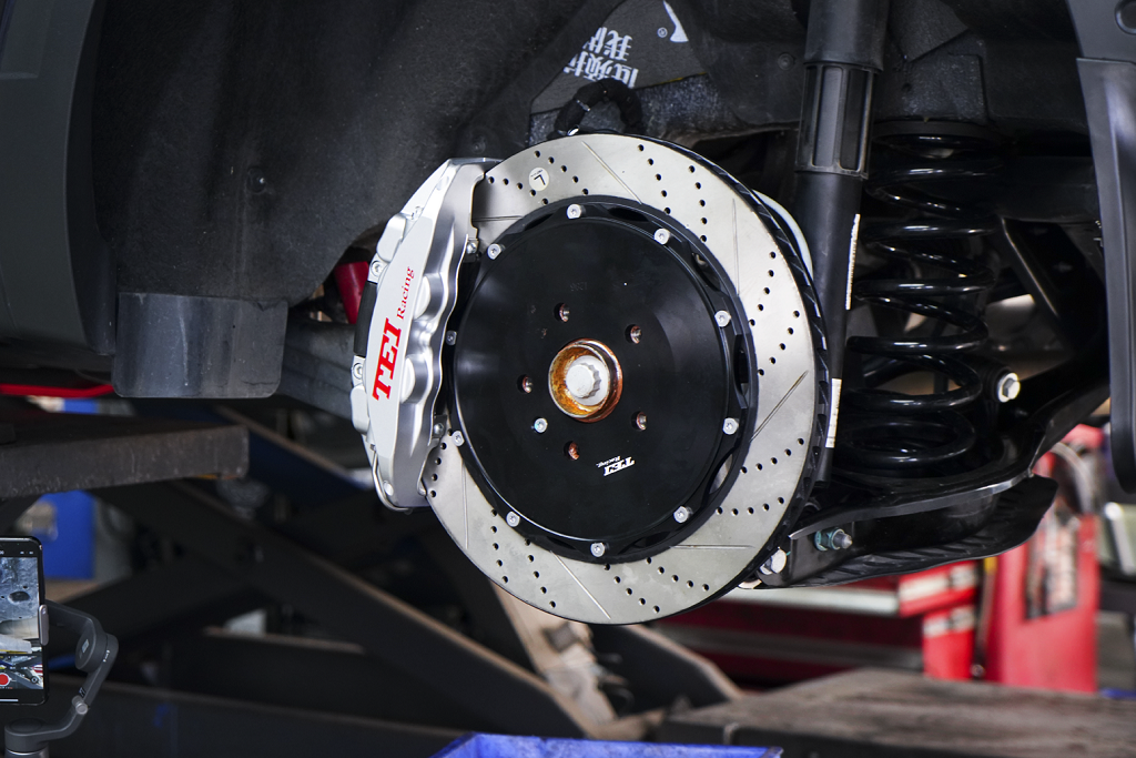原车21寸大轮毂仅配前二后一活塞浮动式卡钳,和常规实心不散热小碟盘看起来空空荡荡;加上车身较长且重,很多车主都反映遇到紧急突发情况刹不住,于是车主找我们升级刹车。提升爱车颜值的同时,彻底解决原车刹车疲软不够用问题!