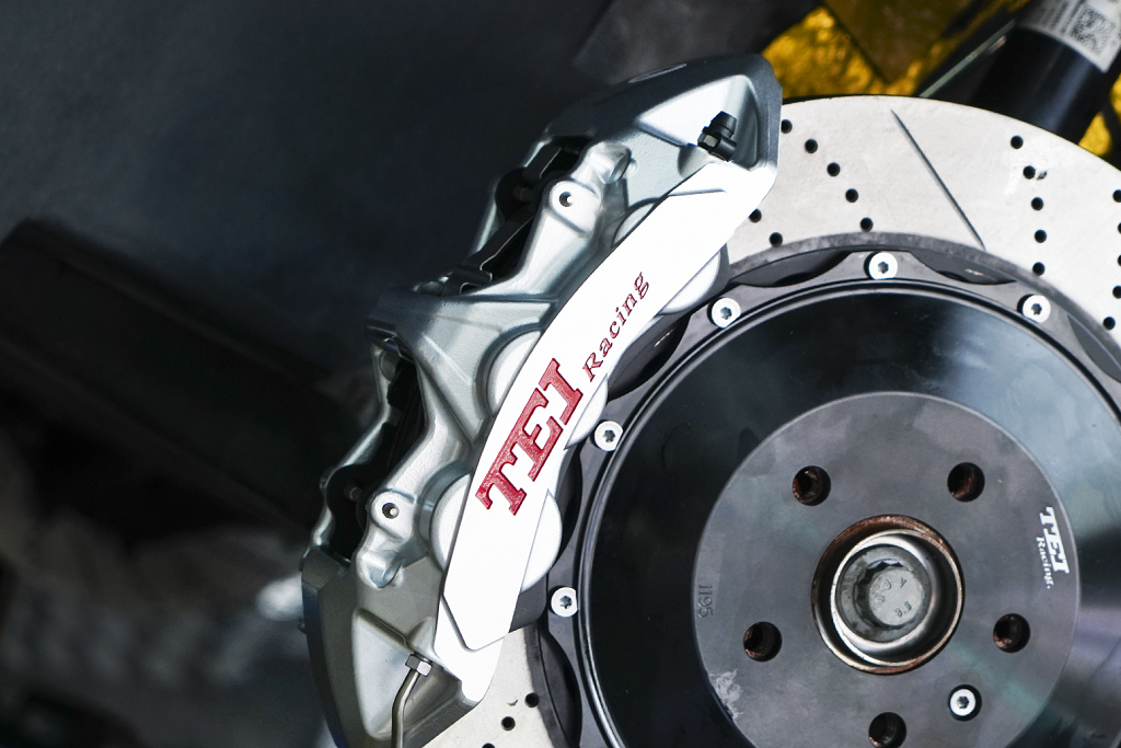 后轮:P4-Explore(银色)机电一体四活塞卡钳,搭配380x28mm打孔划线纹分体盘;