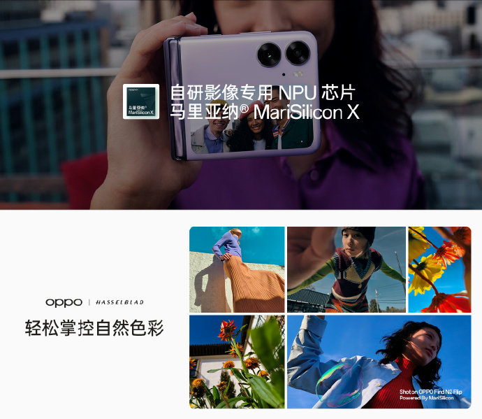 影像方面,OPPO认为折叠旗舰机影像能力同样要有旗舰实力,OPPO Find N2独家定制RGBW人像长焦模组,为夜景人像提供了更丰富的细节,并提升了全焦段的影像配置;自研RAW域无损计算,提升照片的动态范围与夜景效果,并采用大师人像算法,模拟单反镜头景深,让虚化更加自然;色彩上联合哈苏进行深度调试,同时配备自研影像专用NPU芯片马里亚纳® MariSilicon X,打造折叠影像新标杆。