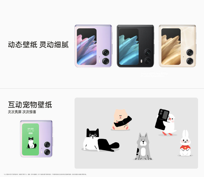 OPPO Find N2 Filp还支持双屏同开,无论高铁票、门票、机票还是会员码等都可以轻松地推到外屏,在内屏的操作也不会受到任何影响,并且其外屏还拥有互动宠物壁纸功能,能与用户互动的专属宠物,每次亮屏,惊喜满满。
