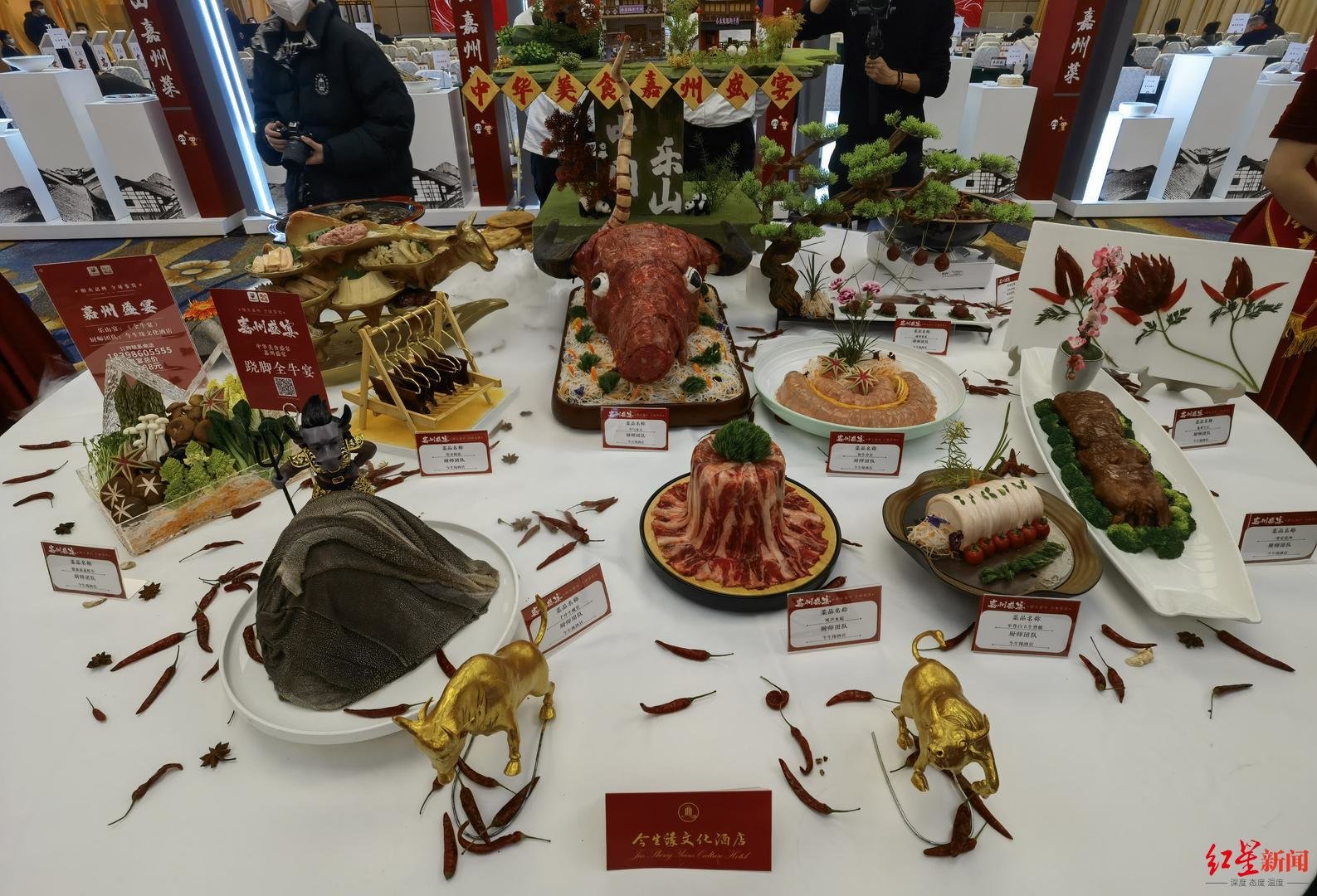 活动现场,东道主乐山市“嘉州盛宴”之跷脚牛肉全牛宴、百串风味宴、西坝豆腐宴、三江雨鲜宴等一一呈现,全方位、多角度展现乐山特色的美食文化。此外,德阳宴、宜宾宴、南充宴、凉山宴等齐聚乐山进行展示交流,吸引了众多“好吃嘴”和美食专家的目光。