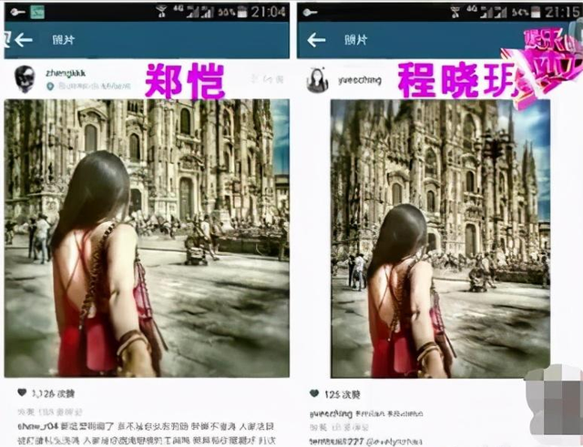一位叫程晓玥的女子,晒出一张男友视角的照片,郑恺自己也发了同款。