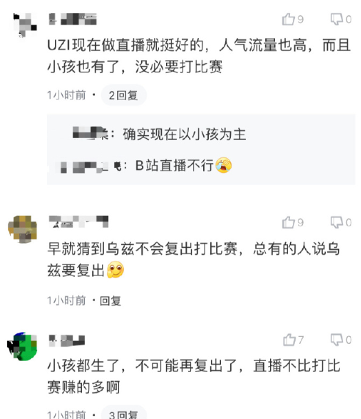 小孩刚出生,确实需要Uzi的陪伴,他不可能放弃家庭,专心投入到比赛当中。等小孩大了以后,Uzi也老了,更不可能复出,所以,往后大家可以不用讨论Uzi复出的事了。
