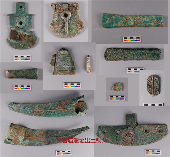 更为异常的是,三官庙遗址的青铜兵器,凌乱分布在房屋周围,多数已经弯曲折损,考古专家秦让指出:“比如说铜戈,有相当一部分出土时,我们发现它有变形的现象。有的是弯折了,有的是断裂了,或者是扭曲”。显然,通过青铜兵器分布,以及折损情况可见,当时发生过一场战争,敌人已经打到了三官庙地区。