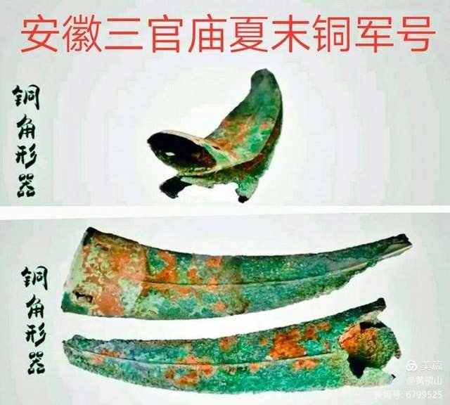 尤为重要的是,该遗址的青铜器极其异常,大致可以分为两类:一是礼器,主要是铜铃,造型和二里头遗址“石舌铜铃”属于同一类型;二是兵器,如铜箭镞、铜戈、铜戚、铜钺等,其中还有一件特殊的铜角形器(见下图),与后世的军号类似,属于是在战场中指挥军事部队的司令号。