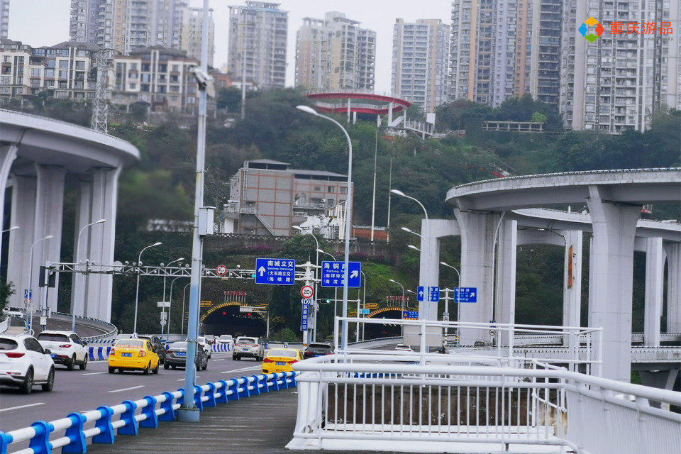 值得一提的是,菜园坝长江大桥北桥头的苏家坝立交高达72米,是一座极为魔幻的建筑,在这里可以感受到山城立体交通的魔幻,公交、汽车仿佛在天上跑。