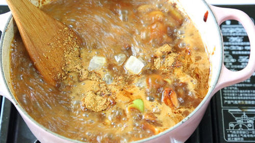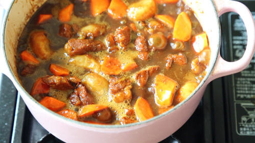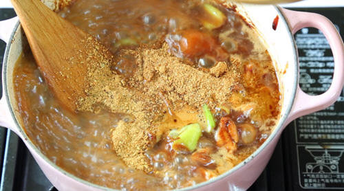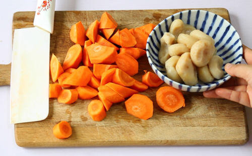 15、1小时后放入马蹄和萝卜搅拌均匀。再继续炖20—30分钟。