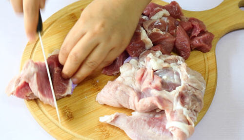 1、羊肉提前浸泡几小时去血水,切大小适中的块。