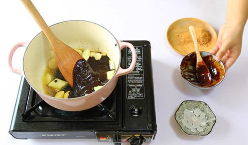 配料:马蹄200克、十三香适量、蚝油适量、柱侯酱适量、腐乳2块、葱蒜适量、米酒适量、冰糖适量、老抽少量