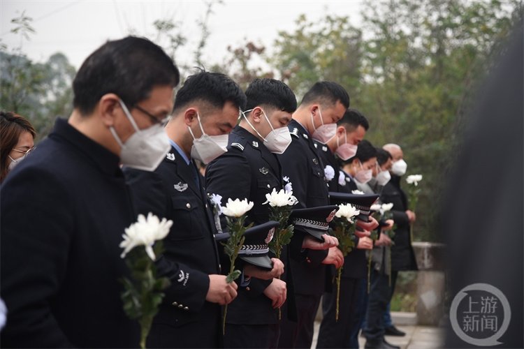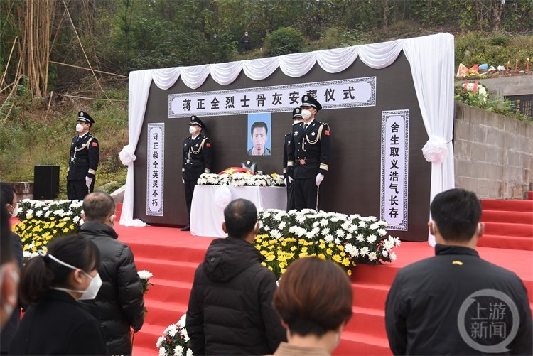 蒋正全烈士的安葬仪式简洁又隆重。在这个略寒冷的冬日,当地以最充满敬意的方式,让这位救人英雄,也是江津的好儿子入土为安。