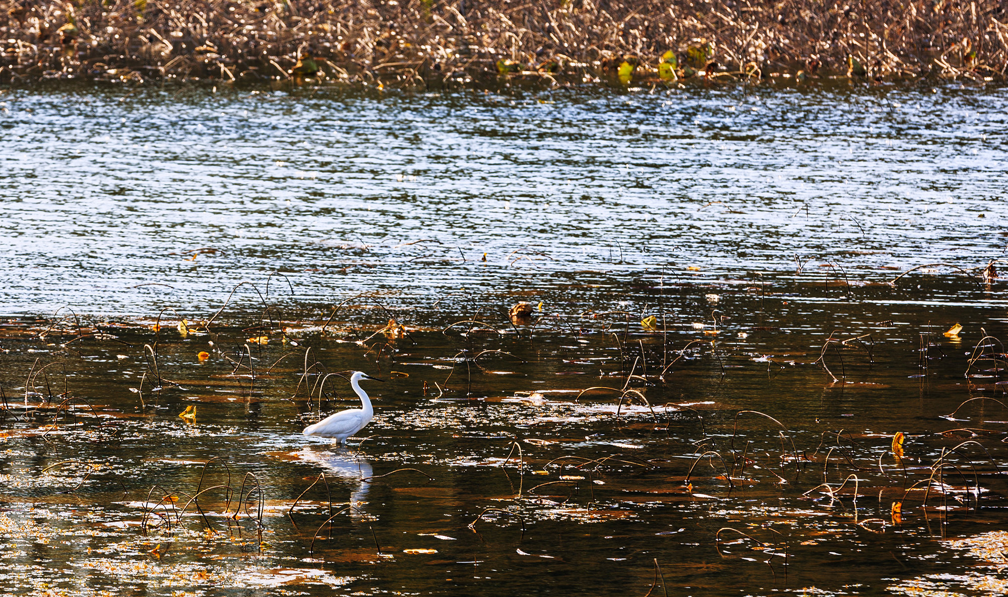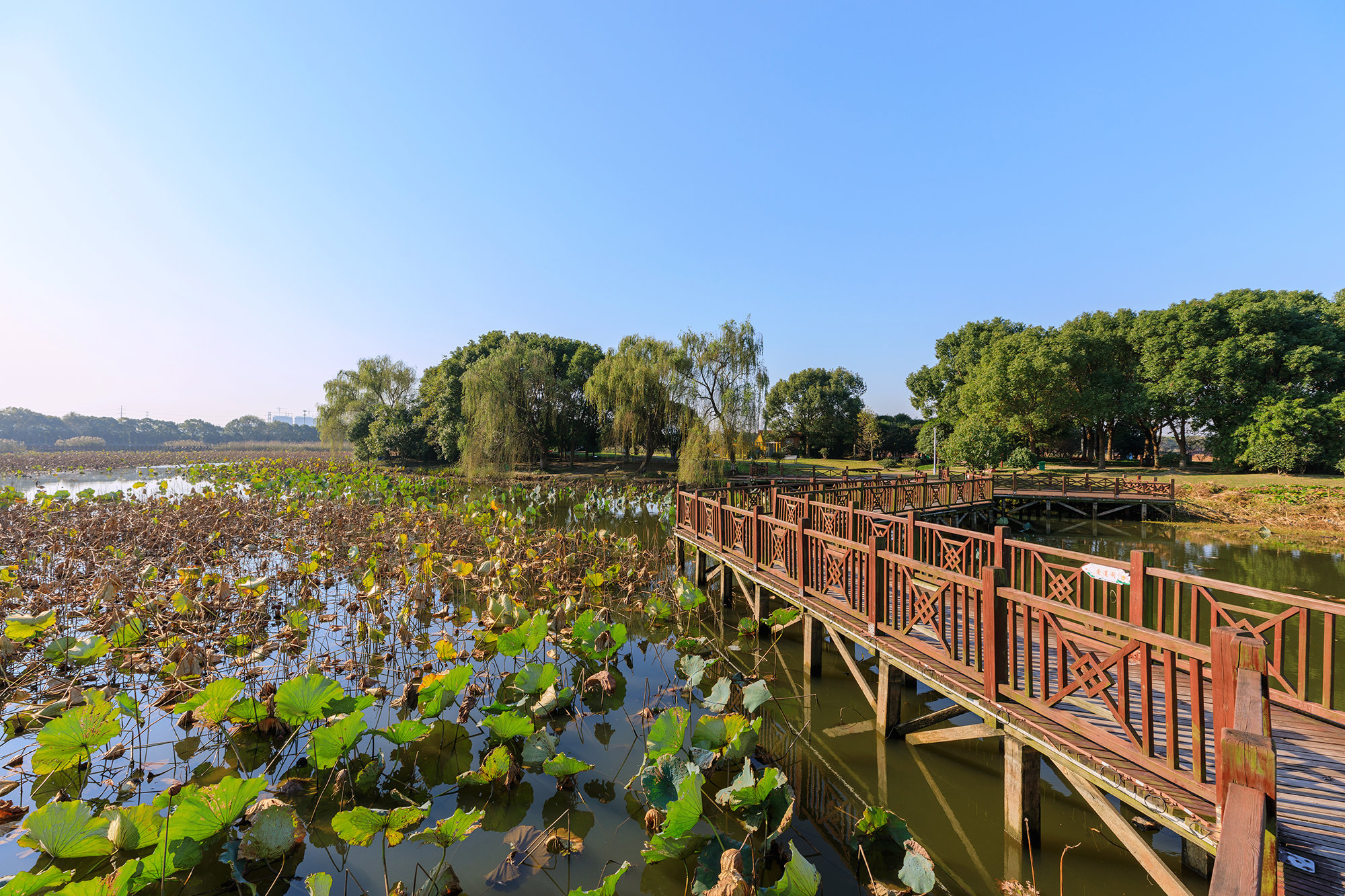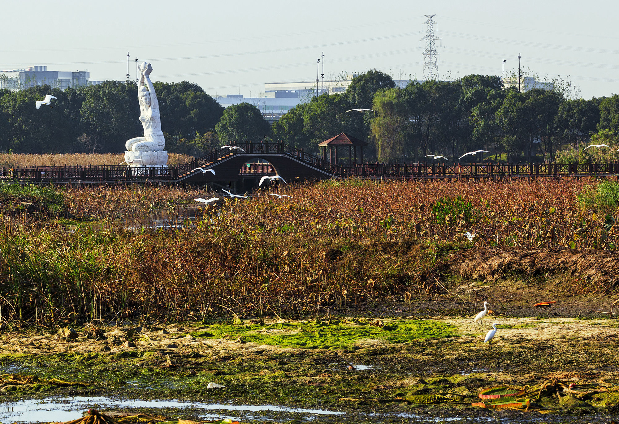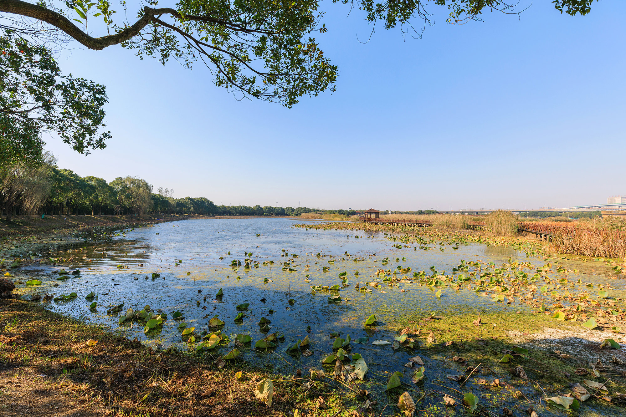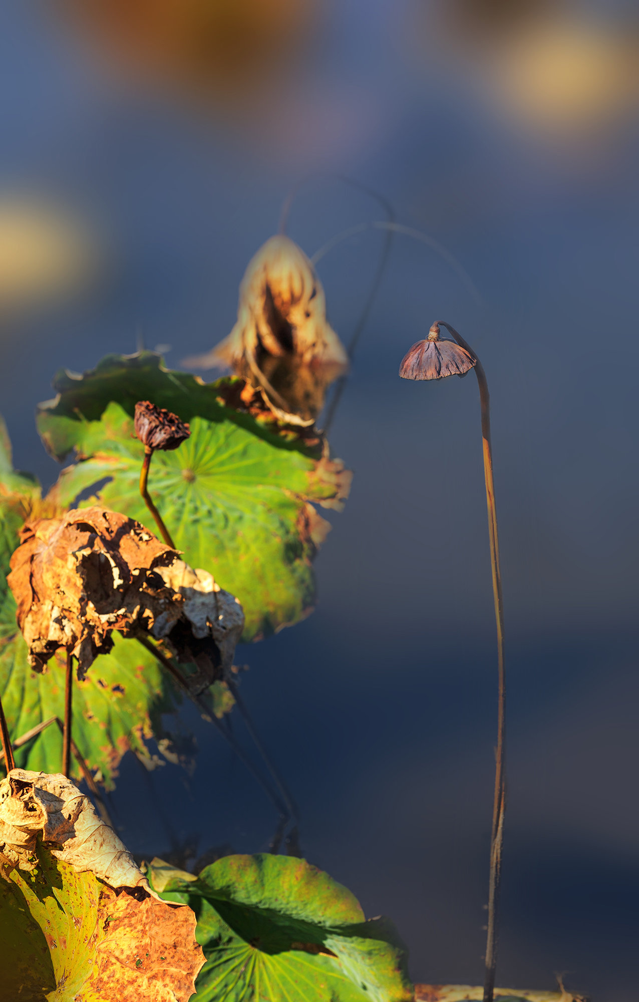 荷塘月色湿地公园里,荷叶凋敝,莲蓬垂老,一如元人刘秉忠曲中所道:干荷叶,色苍苍,老柄风摇荡。