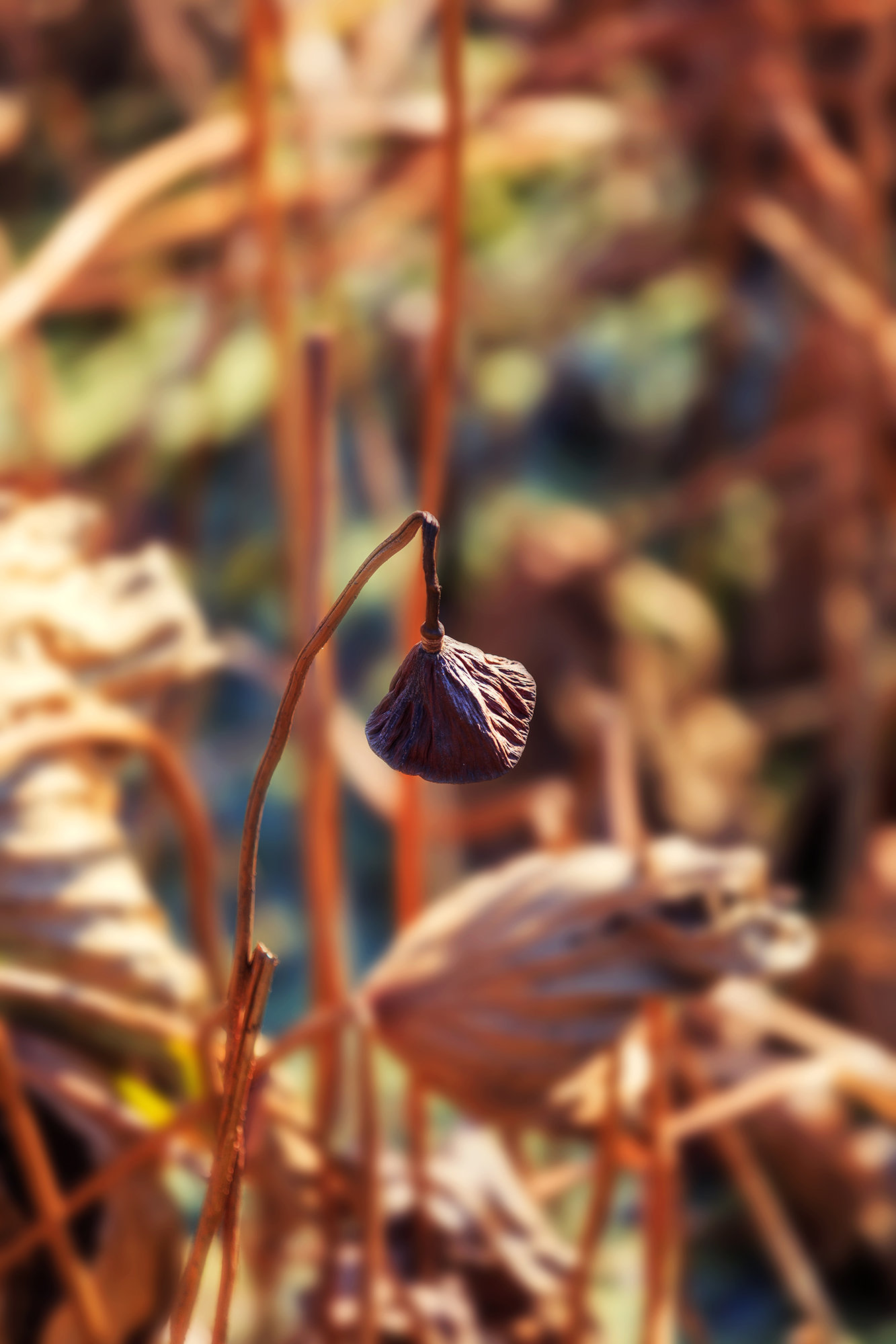 昔日里高昂着头颅的莲蓬,更似一盏盏茕茕孑立的失去了颜色的灯笼,为这冬日平添几分萧瑟。