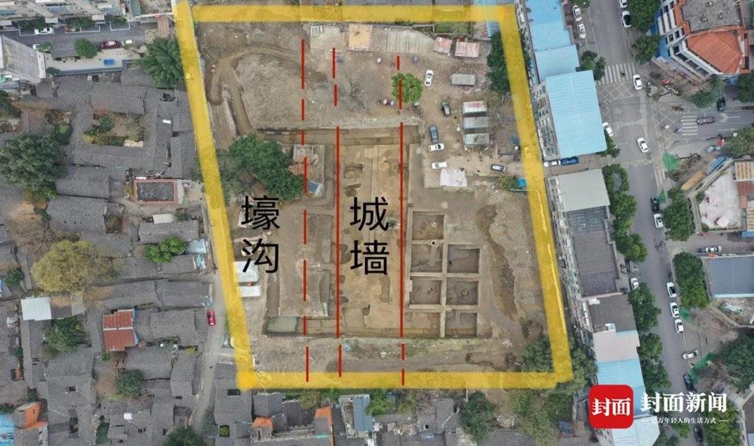 2021年8月,成都文物考古研究院为配合基建项目建设,在青白江区城厢天府文化古镇开展考古发掘工作,意外发现了篆书“新都城”铭文的城墙包砖,经过近一年的艰辛发掘,在该遗址清理各类遗迹100余处,时代自战国晚期延续至近代。