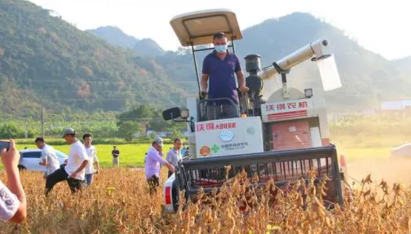 落棋子,做例子。“亩产210公斤,九龙镇南方高蛋白大豆迎来大丰收!”10月23日,在英德市九龙镇石角村千亩大豆繁育基地,收获机在田里轰隆隆来回作业,经收割、脱粒后金灿灿的大豆如泉水一般涌入包装袋。“这可不是普通的大豆,他们是华南农业大学选育的最新高蛋白品种,将为南方6省(区)核心片区供种。”英德侬联农业科技有限公司总经理徐玲自豪地讲。