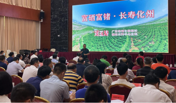 “硒是抗癌之王,锗是人体造氧机,同被营养学家和医学家所推崇,全国富硒富锗条件都齐备的地区凤毛麟角”,刘玉涛在化州市“三级干部大会”上向全市干部讲起了化州市戴上这个区域品牌“帽子”的美好前景。“早在2013年,广东省地质调查院就在化州市发现了大片的富硒区、富锗区。化州市2356平方公里辖区中富硒区占比75.52%,富锗区占比超24.48%。”全世界来讲,在同一区域内齐备富硒富锗条件的极为罕见,这是化州“天上飞得、地上长得、水里游得”所有农副产品、加工品、衍生品最好的品牌故事,化州市一定要好好规划利用它,刘玉涛动情地道。这一体化的“长寿经”很快在全市干部群众中引发了热议,化州市委市政府立刻组建专门的工作班子,全力配合科创中心进行EPCO设计与组织工作。