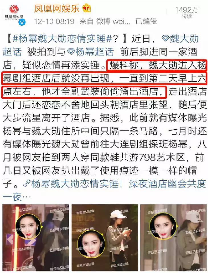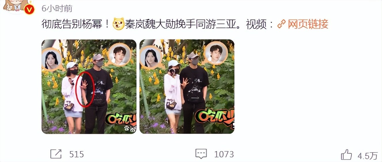 近日,狗仔发博:“彻底告别杨幂!秦岚魏大勋挽手同游三亚。”