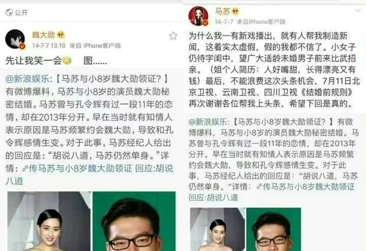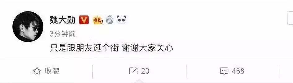 而魏大勋则发了一条模棱两可的微博:“只是跟朋友逛个街,谢谢大家关心。”