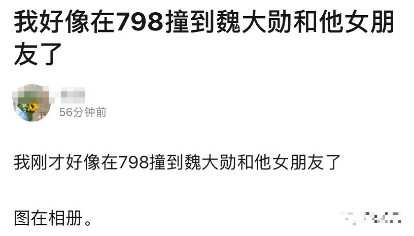 有网友称,在798艺术区偶遇魏大勋和女友,而这个女生的身份最终被指向杨幂。