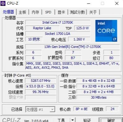 ▼处理器是13700K,大核8个,小核8个,二级缓存24MB,三级缓存30MB,性能表现很棒。