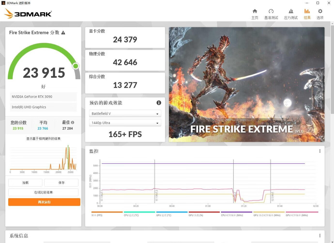 ▼跑个3Dmark的FSE测试,物理得分42646分。