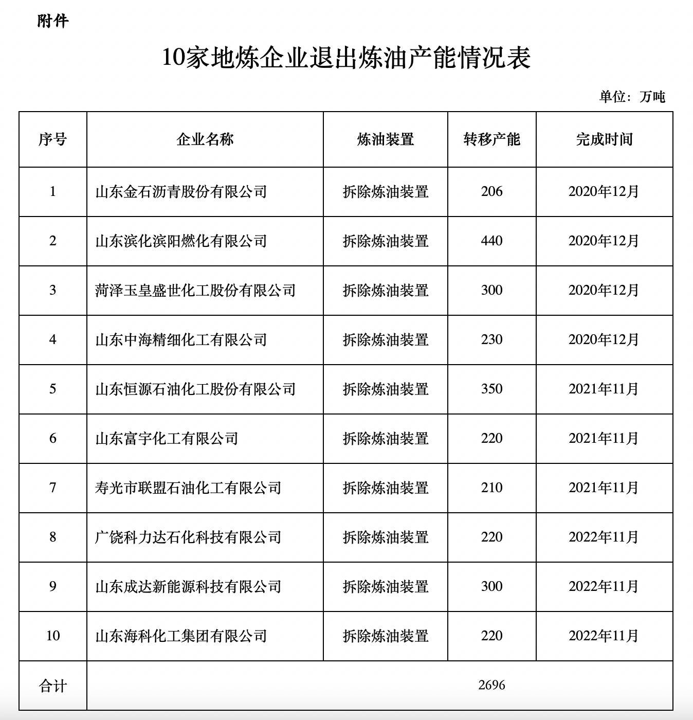 这10家地炼企业分别是:山东金石沥青股份有限公司、山东滨化滨阳燃化有限公司、菏泽玉皇盛世化工股份有限公司、山东中海精细化工有限公司、山东恒源石油化工股份有限公司、山东富宇化工有限公司、寿光市联盟石油化工有限公司、广饶科力达石化科技有限公司、山东成达新能源科技有限公司和山东海科化工集团有限公司。
