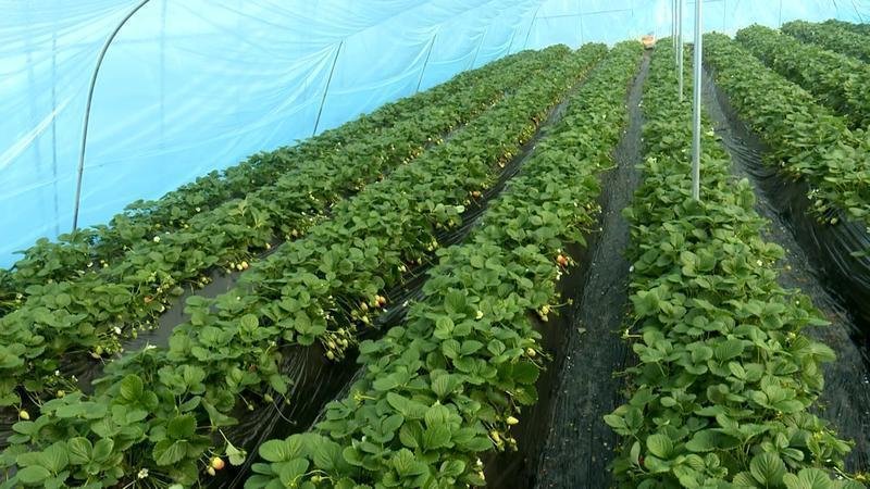 据了解,该产业园于今年2月开工建设,占地面积约50亩,共有34个大棚,7月开始种植草莓。因为是低温棚,采用蜜蜂自然授粉,种出的草莓个头大、果肉饱满、口感好,深受客商喜爱。