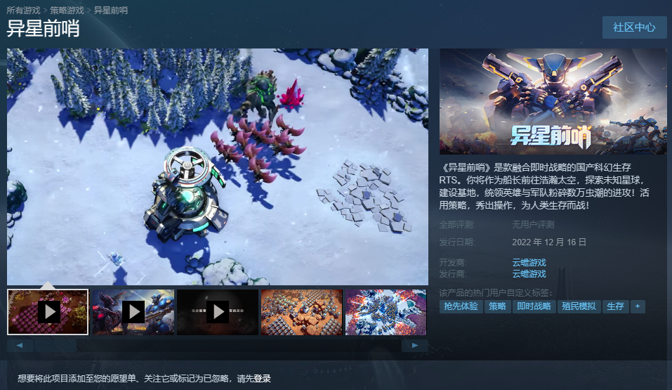 IT之家 12 月 16 日消息,由云蟾游戏发行的首款国产科幻生存 RTS 端游《异星前哨》今日于 Steam、WeGame、Epic 正式发售,游戏售价 68 元,首周 9 折优惠。该游戏已于 7 月获得版号。