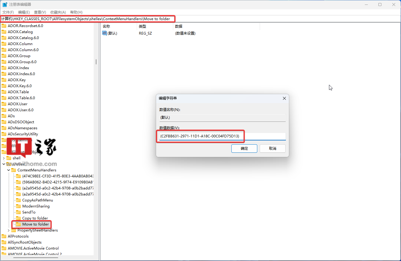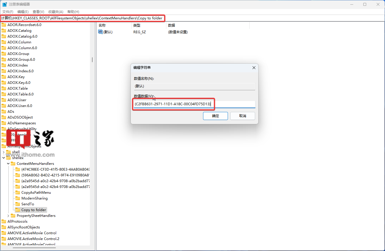 12. 将数值数据修改为“{C2FBB631-2971-11D1-A18C-00C04FD75D13}”(不包括“”)