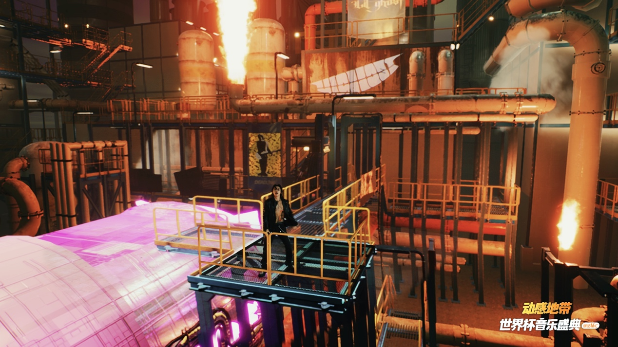 随着另一首《蔚蓝星球上的蛀虫》的前奏响起,转换为朋克摇滚造型的小鬼又登上了专属的粉色飞船,穿越星际,飞向了一家赛博工厂。
