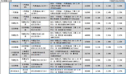 而我们可以再回顾《第13期汽车零整比体系数据》,宝马X3车型的零整比系数为700.7%,奥迪Q5L车型的零整比系数为479.21%,沃尔沃XC60以465.52%的零整比系数成为三者中最低。从今年的零整比榜单来看,宝马X3、奥迪Q5L以及沃尔沃XC60的零整比系数分别为712.93%、507.01%、465.87%。两年的对比中,同品牌车型的数据似乎差别不大,但同级别不同品牌的零整比系数却是一目了然——沃尔沃XC60零整比系数明显优于另外两款BBA友军车型。