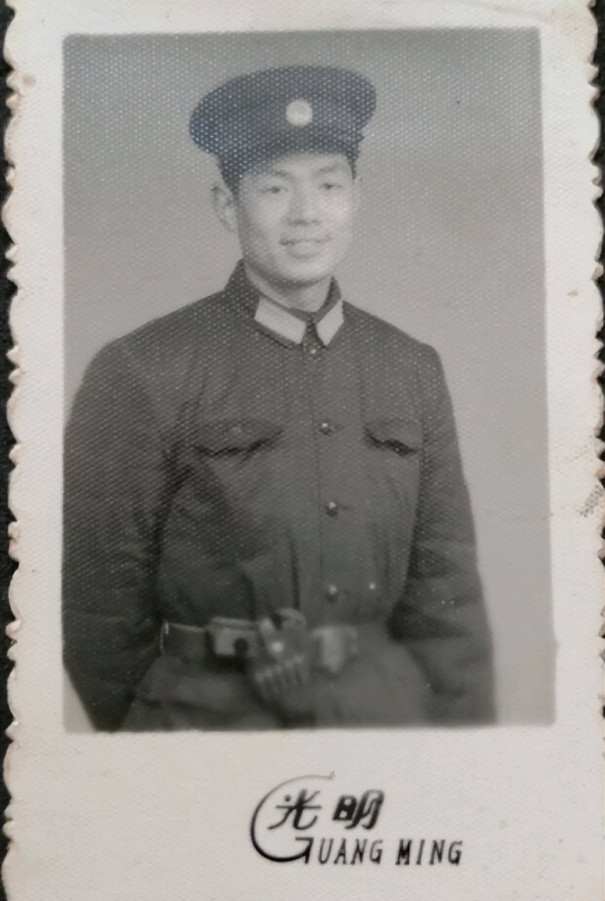 上世纪五六十年代光明照相馆拍摄的警察制服照。照片上的年轻警察配着枪,微微侧着身子,看起来十分帅气。这就是网友分享的老照片。网友说,那时候她爸爸不满三十岁,气质很好。