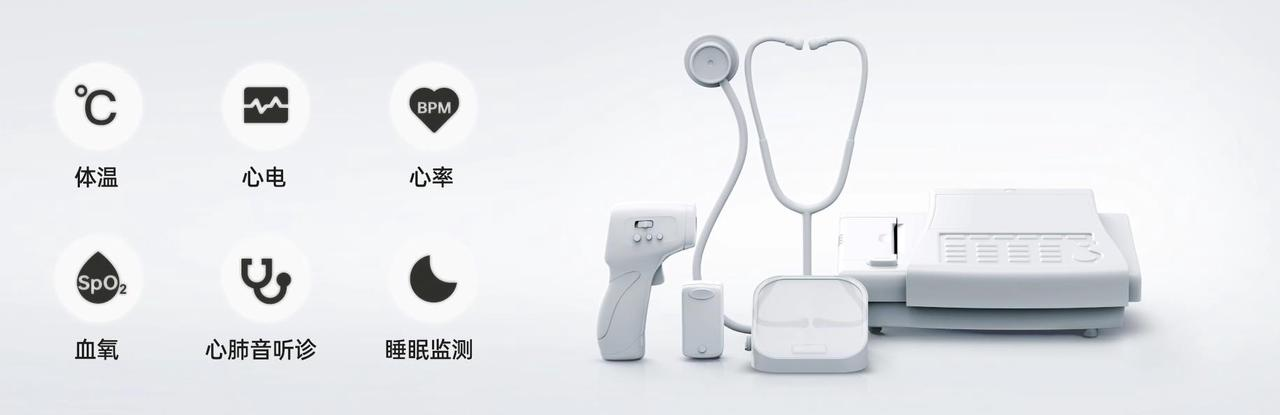 据 OPPO 健康实验室负责人曾子敬介绍,这是 OPPO 探索科技健康领域的首款产品,不仅可以实现医疗级精度的体温、心电、心率、血氧、心肺音、睡眠六大健康体征数据监测,而且还能搭配 APP 实现远程听诊、视频问诊等功能,堪称是家庭健康监测的“万能神器”。