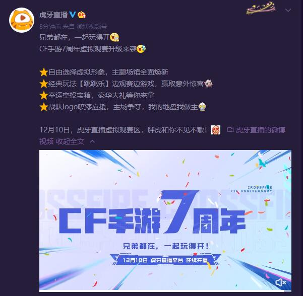 转眼间,CFM已经运营了7年之久,在这期间手游能够稳定为众多爱好穿越火线的玩家提供便利的游戏服务,也是一种幸福的责任。玩家在轻便体验游戏的同时,更能找回当年的情怀,因此在这个周年庆,CF手游官方给玩家们带来了诸多福利。除此之外,虎牙为了CF手游联赛CFML总决赛,更是为观众上线了虚拟观赛2.0最新玩法“跳跳乐”,对比1.0观赛又提升了众多趣味与功能。