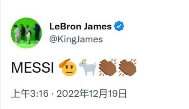 赛后,体坛多位巨星都向梅西送上了祝贺。篮球巨星詹詹姆斯就更新社媒,致敬梅西。詹皇只写了梅西的名字,并且附上了致敬、鼓掌的表情。此外还有代表历史最佳的“GOAT”标志。另外一位NBA巨星哈登,也发文称赞“梅西是GOAT!”
