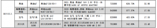 中保研《第14期汽车零整比体系数据》50万以上车型汽车零整比系数