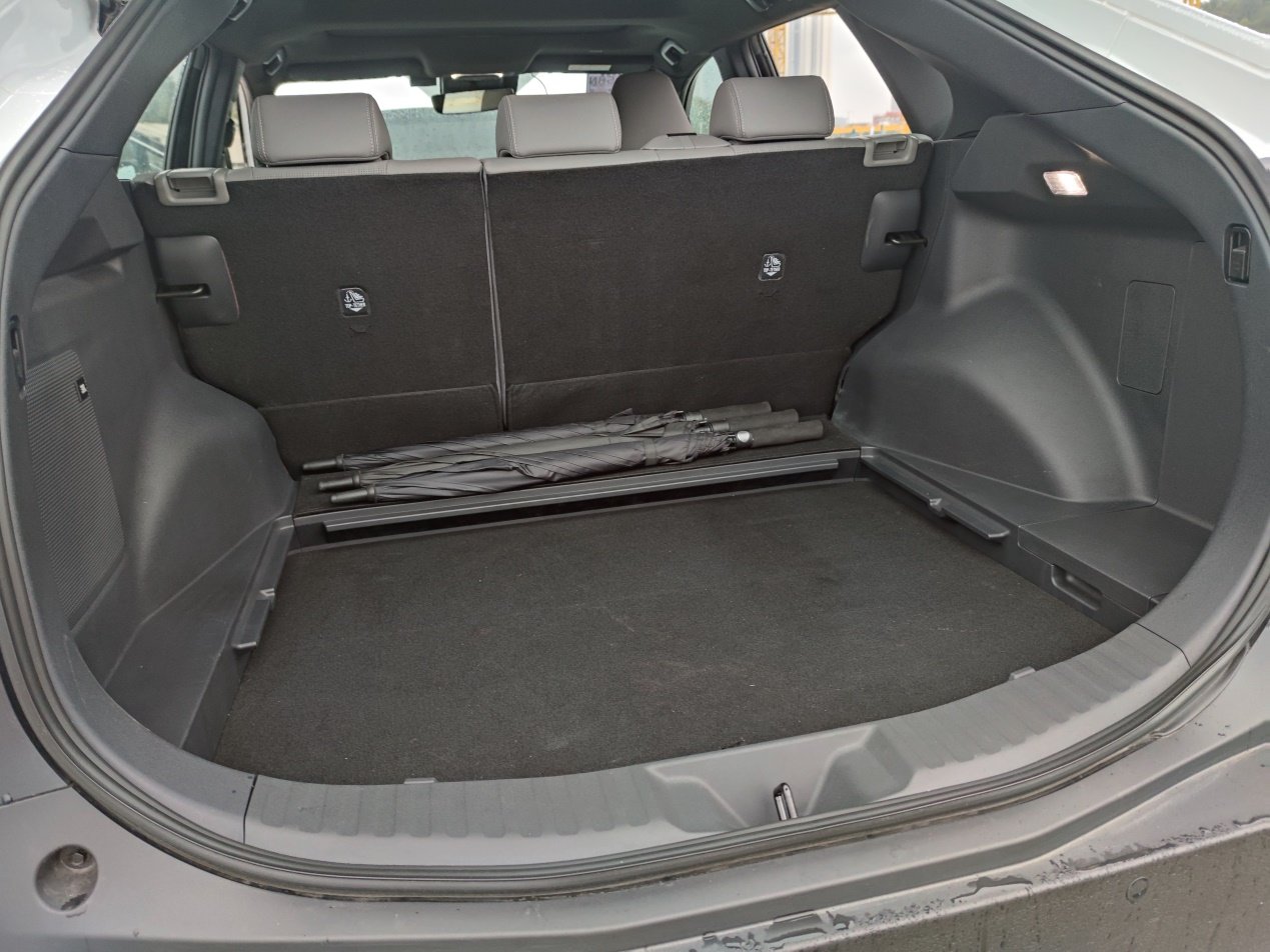 来到后面的尾厢部分,整体的纵深还是相当不错的,并且两侧的轮拱也没有占用太多空间,因此尾厢的空间还是相当充裕的。如果你觉得这个空间还是不够,那么还能把后排座椅靠背平整放倒,或者是把尾厢隔板往下再降一层,这样尾厢的空间就能得到进一步扩大。