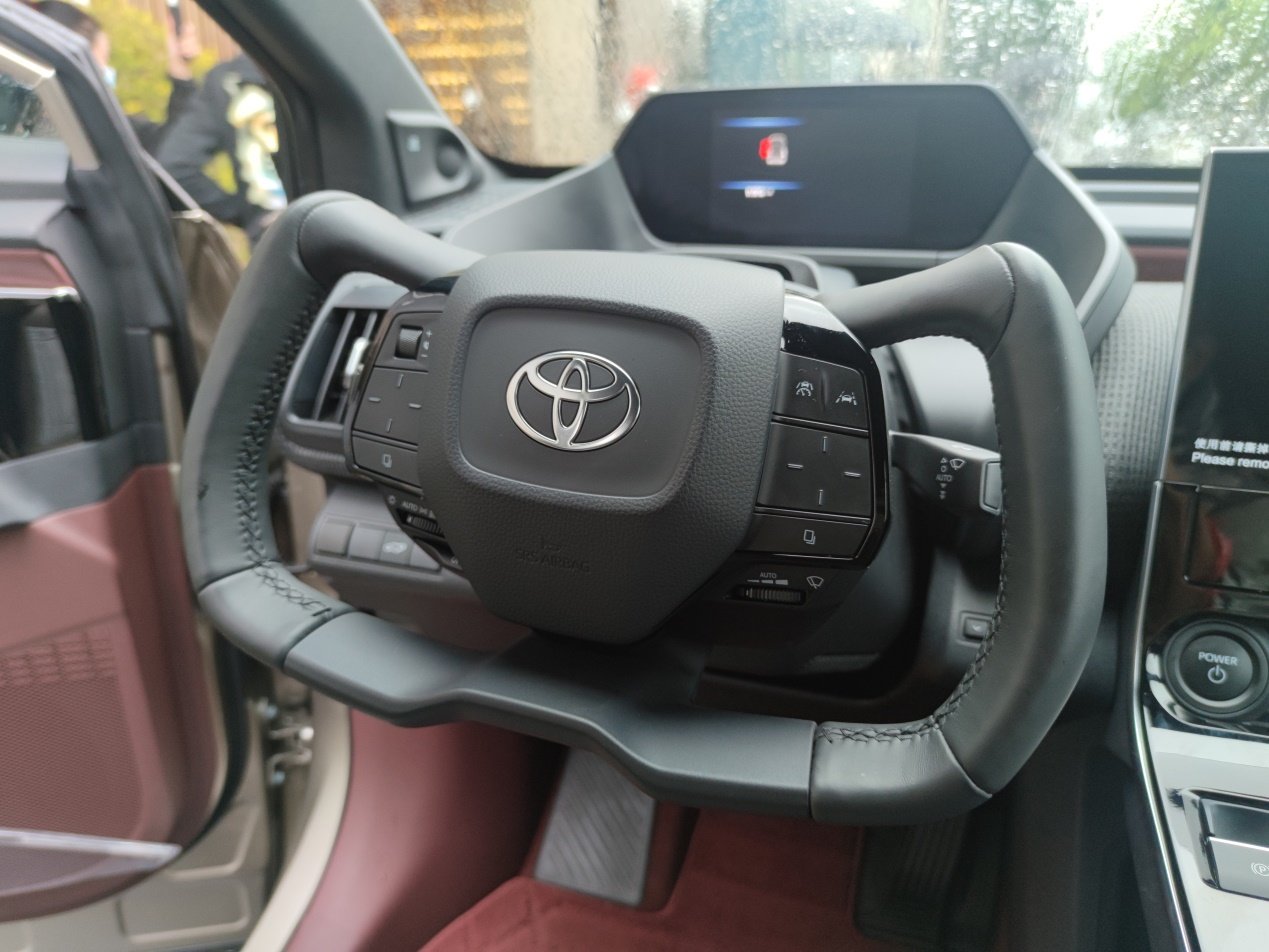当然不够新的东西也有,比如那三幅式方向盘,上面那截外圈,怎么调都有挡仪表的感觉,方向盘内部的多功能按键也呈竖状布局,看着不怎么顺眼。所以,这就是bZ4X先天不足的地方?其实不然,你把造型科幻的矩形方向盘放进去,就会发现一切都是协调有趣的。不过比较可惜的是,这个矩形方向盘据说要明年才有可能引入,相当考验消费者的购买耐心,如果后续广汽丰田能为它提供矩形方向盘官方选装,相信会有很多消费者被它吸引。