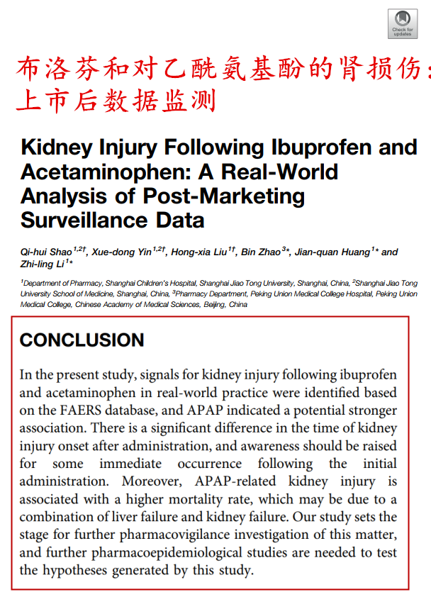 我国研究人员分析了2004年~2021年FDA药物不良事件报告系统(FAERS)的3000多例相关事件,比较布洛芬和对乙酰氨基酚在大规模人群中引发的肾损伤情况,结果发现: