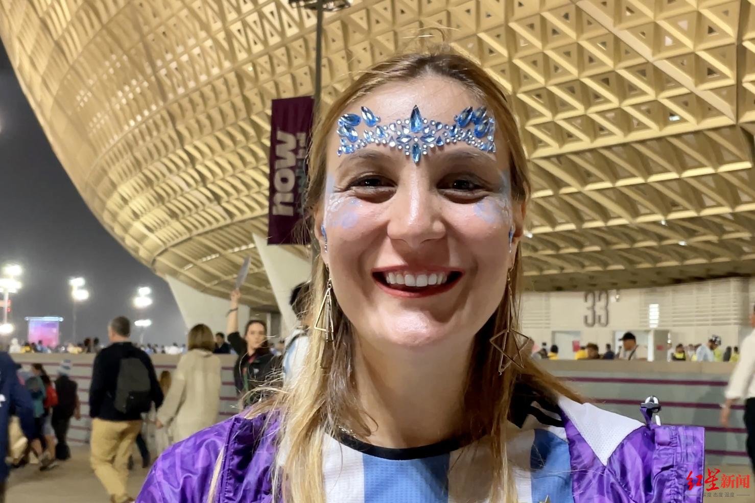 而在卡塔尔,真的有一位阿根廷女球迷用中文庆祝着阿根廷队闯进决赛,她还用四川话鼓励梅西,“梅西雄起!”