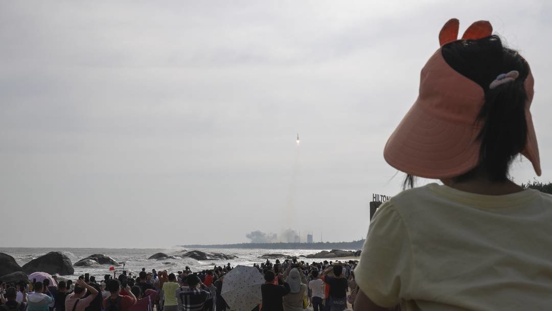 2022年7月24日,长五B火箭托举问天实验舱升空。摄影:杨峰