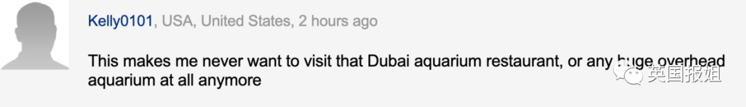 “看完这个我再也不想去迪拜的水族馆餐厅了,确切地说是任何有空中大水族箱的地方,我都不想去了。”