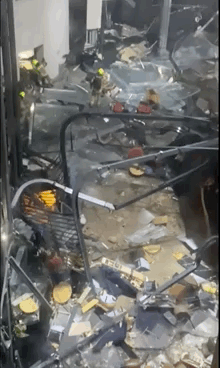 破碎鱼缸玻璃、酒店大厅的家具、其他店铺的玻璃和商品被卷进水中。